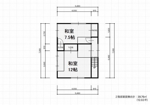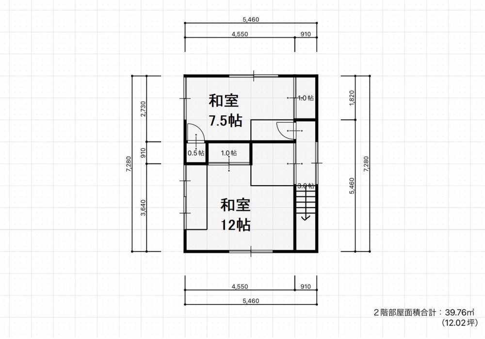 | 2階床面積 | 39.74m²(12.02坪) | 延床面積 | 95.22m²(28.80坪) |