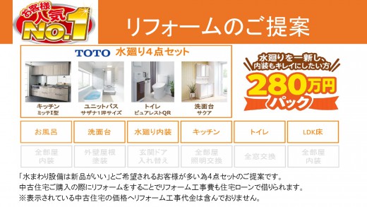 280万円(税込) (土地+建物+諸経費等) |