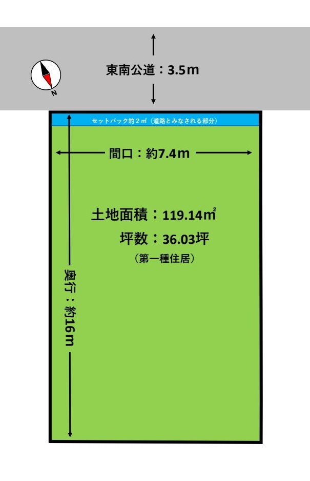 備考セットバック約2㎡有り(間口7.4m×奥行0.25m)